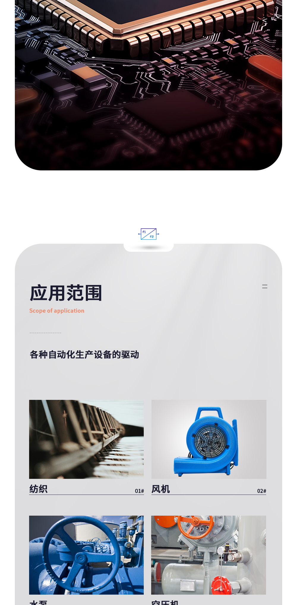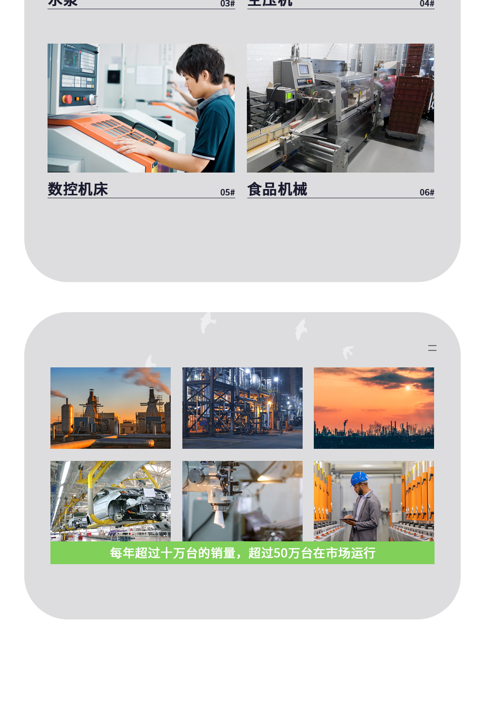 跑步機行業、棉機行業、機床行業、光飾機行業、繩鋸機、洗衣機、EPS同步切換、紡織行業、陶瓷行業、數控機床行業、重型起(qǐ)重負載,數控加工中心、印刷包裝設備、紡織設備等高端應用場合。