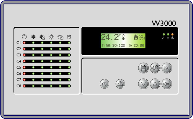 2. 機組控制與運行管理:先進(jìn)的W3000 微電腦智能(néng)控制系統,内置克萊門特特殊設計的控制算法,更加突出機組的節能(néng)性和可靠性:FIFO 壓縮機運行時(shí)間均衡功能(néng),延長(cháng)整機壽命;自動負荷調整輸出功能(néng),節能(néng)節電;通過(guò)與壓縮機的減載系統相配合,實現25-100%無級調節;運行參數調整和設定,适應不同環境應用;溫度壓力保護采用模拟量測量,可以預測預防故障發(fā)生,增加可靠性。
